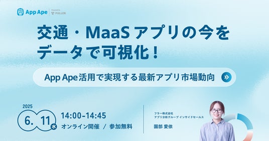 アプリ市場分析サービス「App Ape(アップ・エイプ)」を手がけるフラー株式会社(本社:新潟県新潟市、代表取締役社長:山崎将司、以下「フラー」)は、交通・MaaSアプリの利用動向を多角的に解説するセミナーを2025年6月11日(水)に開催します。