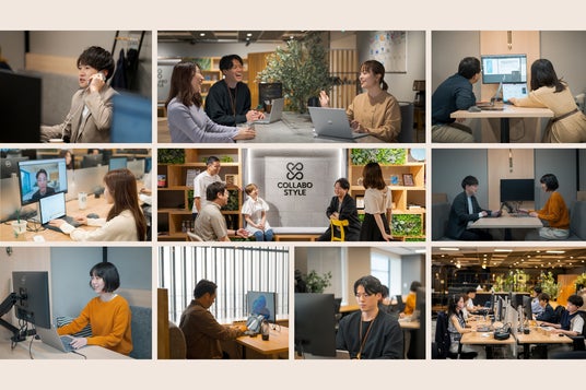 コラボスタイルは、企業理念「ワークスタイルの未来を切り拓く」のもと、業務効率化により働きやすさを向上させるワークフローシステム「コラボフロー」をはじめとするクラウドサービスの開発・提供を行うデジタルワークプレイス事業、一人ひとりが働きがいをもって働けるオフィスデザインを行うワークスタイル事業を行っています。さらにワークスタイルをより良くするサービス提供だけでなく、自社が率先して働き方をバージョンアップし、世の中に発信していくことを大切にしています。