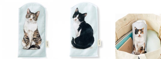 猫がおすわりをしている姿がプリントされた、ペットボトルが入れられるタオルです。綿100%のタオル素材なのでペットボトルの水滴を吸収するのはもちろん、二つ折りにすればハンカチとしても。こちらもアジア圏のお客様がまとめ買いしていく様子が見られ、上位にランクインしています。
