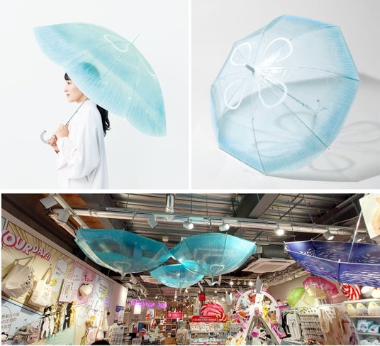 同店では5月30日、オープン約1ヵ月の商品販売実績を集計して「デザイン透明傘」部門と「個性派タオル」部門それぞれの人気ベスト5を発表しています。特にこれから迎える梅雨シーズンに向けて、実用性と話題性を兼ね備えたアイテムとして注目されています。雨模様の日もKAWAIIに心を奪われSNSでシェアしたくなる商品ばかり。特にデザイン傘については、お買い物をしたお客さまが店頭で商品を開封して、そのまま会場内を周遊する姿が見られています。雨の日は会場にクラゲや紫陽花が浮かぶ光景もお楽しみください。