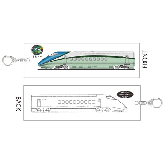 前面はとれいゆ つばさとロゴ、裏面は先頭車体図と銘板が描かれた、カバンなどにつけやすいサイズのキーホルダーです。