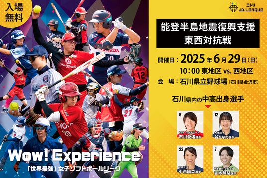一般社団法人 日本女子ソフトボールリーグ機構(所在地:東京都新宿区、代表理事兼会長兼チェアマン:高城 いづみ)では、ニトリJD.LEAGUE 2025 において、令和6年能登半島地震復興支援活動の一環として「能登半島地震復興支援 東西対抗戦」を金沢で開催します。