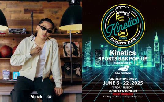 この度、ストリートカルチャーを牽引し続けているショップ“Kinetics(キネティクス)” がNew Balanceのサポートのもと、“今”の東京を詰め込んだ多層的空間のSPORTS BARを期間限定でOPEN。