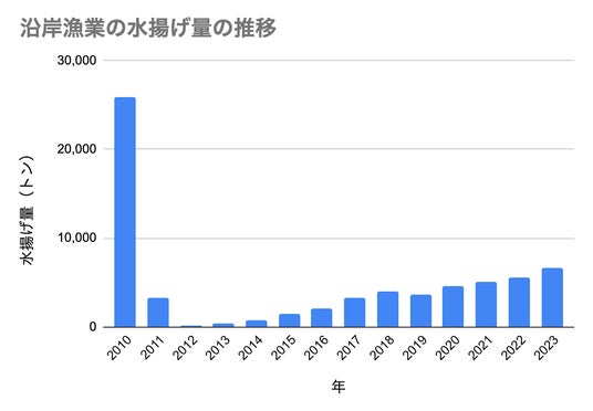 《参照》福島県ポータルサイト:沿岸漁業水揚数量、金額の推移(属地集計)