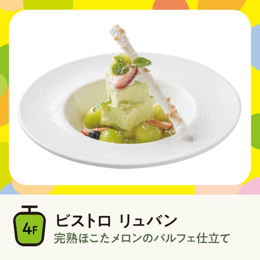 パンナコッタ、レモンゼリー、グラノーラ、ミルクジェラートなど豪華な脇役が、主役のメロンをおいしくサポート!/¥1,530