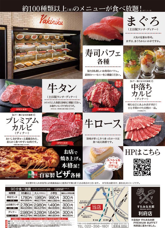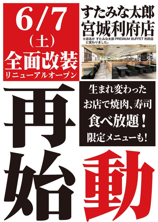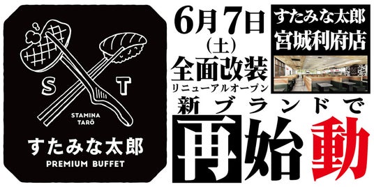 6/7(土)全面リニューアルオープン!すたみな太郎PREMIUM BUFFET利府店