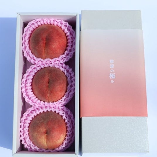 桃の木でいちばん栄養が集まる先端部分になる実は糖度18度以上の甘さと、驚きのうまみを感じられるプレミアム桃。1本の木からわずかしか穫れない桃だけを詰めました。特別なギフトとしてもおすすめです。