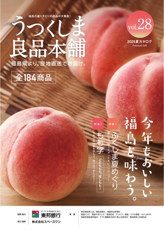 株式会社スペースワン(本社:福島県郡山市)は、2011年の東日本大震災を受け、福島県復興支援ならびに県産品の販路拡大に努めてまいりました。同年10月より東邦銀行の協賛・協力のもと、福島県産品オンラインストア「ふくしま市場」ならびに冊子カタログ「うつくしま良品本舗」の運営をしております。この度、第28号となる「うつくしま良品本舗2025夏カタログ」を刊行しました。