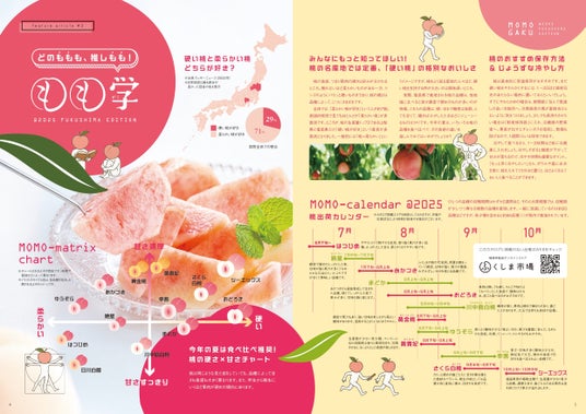 巻頭では、「ふくしま夏めぐり」と題し、福島県内の自然や文化・グルメが楽しめる夏のおすすめ観光スポットをご紹介しています。五色沼や磐梯吾妻スカイラインなど、夏休みの旅行や帰省の際に訪れたくなる魅力的な名所が満載です。また、福島の夏を代表する果実「桃」に焦点を当てた「もも学」では、桃の品種ごとの特徴や収穫時期、美味しい食べ方のポイントなど桃にまつわる奥深い知識を楽しく学べる内容となっています。読めば「桃」を味わいたくなる特集です。
