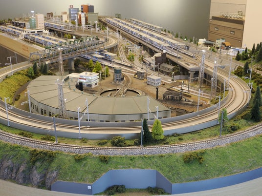 ・トミックスジオラマ:神田ショールームから移設した、トミーテック製品を中心とした巨大ジオラマです。鉄道模型が走行する様子をご覧いただけます。