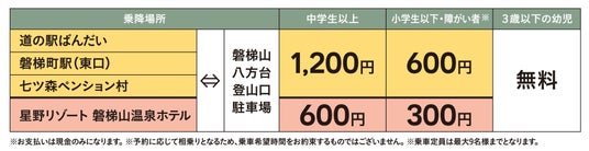 多くのお客様に磐梯山登山をお楽しみいただくために実証実験として、予約制の送迎タクシーを運行しております。