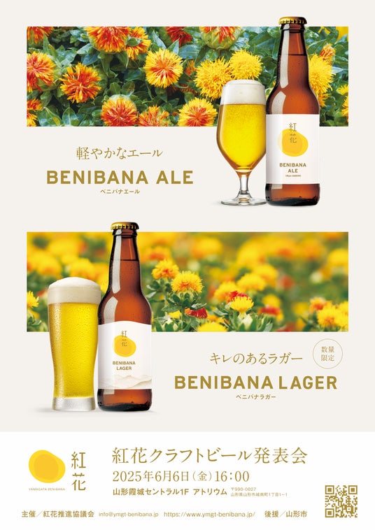 紅花推進協議会(山形県山形市)は2025年6月6日(金)、県産紅花を使用した2種類のビール「BENIBANA ALE」・「BENIBANA LAGAR」の製品販売の発表会を開催いたします。