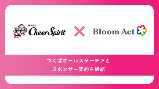 株式会社Bloom Act(本社:茨城県つくば市、代表取締役:高野 峻、以下「Bloom Act」)は、つくば市を拠点に国内外で活躍する競技チアリーディングチーム「つくばオールスターチア」を運営する株式会社Cheer Spirit(本社:茨城県つくば市、代表取締役:奥寺 由紀)とスポンサー契約を締結したことをお知らせいたします。この契約を通じて、Bloom Actは地域から全国、そして世界に挑戦するつくばオールスターチアの姿勢に共鳴し、「応援の力」を原動力に、地域の活力向上と多様な人材が輝く社会づくりへの貢献を目指してまいります。
