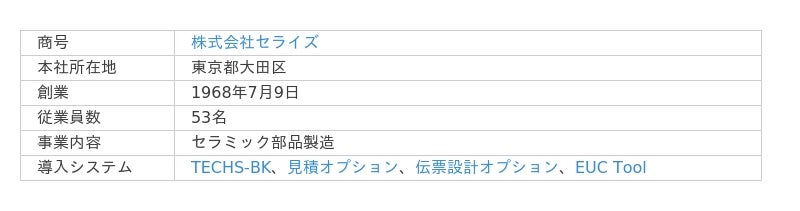 今回見学会を実施する株式会社セライズ様(本社:東京都大田区、代表取締役社長:金子 素子 様)では、多品種少量型 中小製造業様向け 生産管理システム『TECHS-BK』をご導入いただいております。