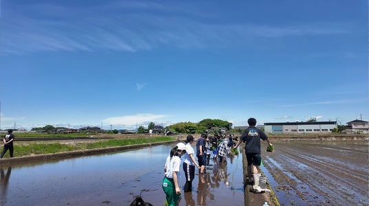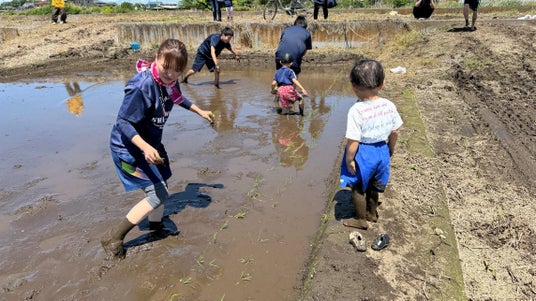 初めての泥の感触に戸惑いつつも、スタッフの説明を受けながら、一つひとつ苗を丁寧に植えていきました。小学生は保護者の方々もサポートしながら、親子の共同作業で田植えを進める姿が見られました。参加した高校生は、「普段できない経験ができて、お米の苗を植えることでつくる大変さがわかった」と語り、一般参加者や保護者からは、「子どもへの食育」「スーパーで買う以外の体験もさせたい」といった目的での参加理由が寄せられ、食に対する意識の高さが伺えました。