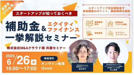 テーマ:【経営者・CFO必見】徹底解説!スタートアップが知っておくべき補助金とエクイティファイナンスの選択肢(株式会社M&Aクラウド 共催セミナー)