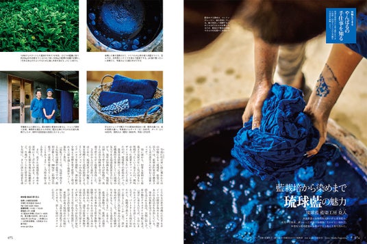 琉球王国時代から受け継がれてきた技術・技法でつくられる沖縄の工芸品。今回は、その中でも琉球藍と芭蕉布の体験ができる工房をご紹介。琉球藍の栽培から手掛けている「琉球藍 藍染工房 亜人」と、廃校を活用した場「喜如嘉翔学校」で、芭蕉布作家の指南の下で体験できる芭蕉の糸づくり体験を取り上げています。実際に体験することで、沖縄の美しい工芸への理解を深めることがかなうはずです。