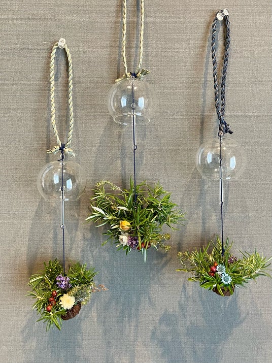1. オリジナル風鈴作りに挑戦、七島藺(しちとうい)にハーブの香りを添えて