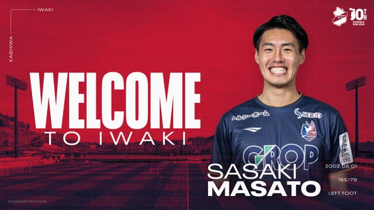 このたび、いわきFCは、柏レイソルからファジアーノ岡山に育成型期限付き移籍していたGK佐々木雅士 選手が、育成型期限付き移籍で加入することとなりましたので、お知らせいたします。