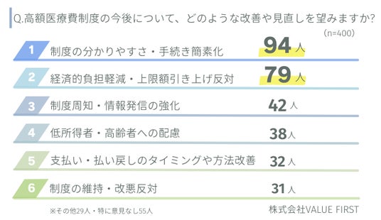 「高額医療費制度の今後について、どのような改善や見直しを望みますか?」という質問に対して、上記のような結果になりました。