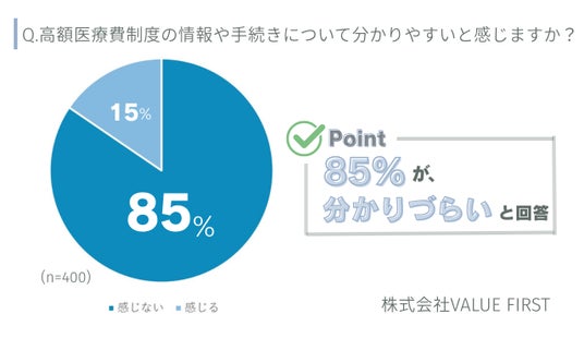 「 高額医療費制度の情報や手続きについて、分かりやすいと感じますか?」という質問に対し、「感じない」と回答した人は、なんと400人中338人でした。