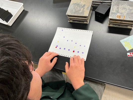 測定したデータをもとに、触って判別できるシール付きグラフを作成。