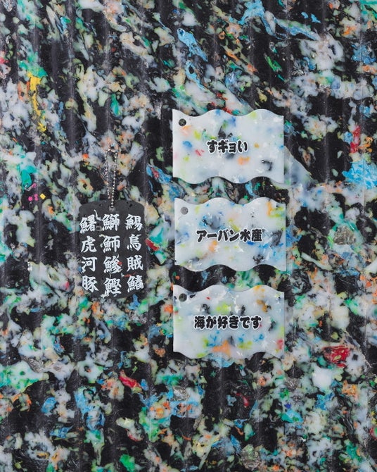 もう一つは漁師たちが船に掲げる大漁旗をモチーフに。カラフルな大漁旗を、カラフルな海洋ごみ由来のプラスチックで表現しています。