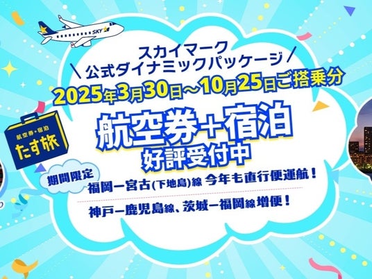 『たす旅』は、スカイマークの航空券とホテルを自由に組み合わせて予約できるWEB予約限定の旅行商品です。2025年10月25日(土)帰着分まで、スカイマークの全就航路線で利用可能です。