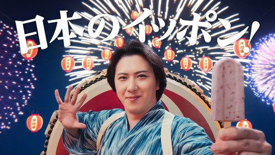 キャッチコピーは「日本(ニッポン)のイッポン!」。夏を感じさせる『和太鼓』『打ち上げ花火』を象徴的に登場させることで、「あずきバーで日本の暑い夏を乗り切っていただきたい」という想いを表現しました。尾上松也さんが力強く和太鼓をたたく姿とかわいらしいアズキキングとの息の合った掛け合いも見どころです。