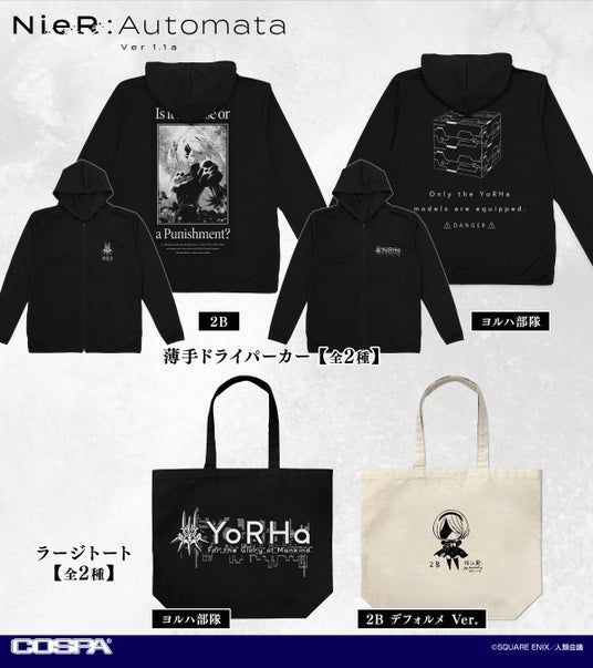 公式キャラクターコスチュームやアパレル・グッズの企画、開発、製造を行う株式会社コスパ(所在地:東京都渋谷区、代表取締役:松永芳幸)は、アニメ『NieR:Automata Ver1.1a』新グッズを発表した。