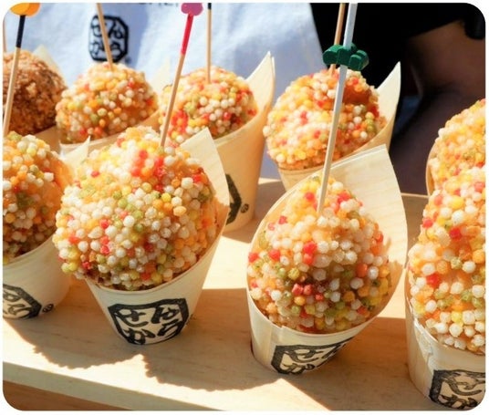 地域との取り組みを重視した、から揚げ専門店から。 せんべいの1種として愛され、おせち料理や懐石料理にも振舞われる京都発祥の“五色あられ”を使ったからあげが登場。ポップな色彩やシャリっとした独特の食感が、夏祭りの楽しい気分をもっと盛り上げてくれそう!