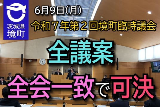 茨城県境町(町長:橋本正裕)では、令和7年6月9日(月)、第2回臨時議会を開き、全議案全会一致で可決いたしました。