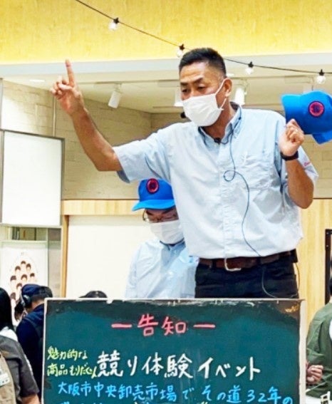 大阪市中央卸売市場本場内「大果大阪青果株式会社」果実部に所属し、その道年の現役競り人・宮 重雄さんによる競りを開催!市場さながらの雰囲気を体験できるこの機会を、ぜひご取材ください!