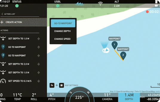 Deep TrekkerのBRIDGEソフトウェアに組み込まれた自律航行機能です。・ウェイポイント半自動航行