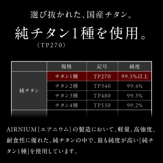 AIRNIUM|素材は最高純度の純チタン1種(TP270)