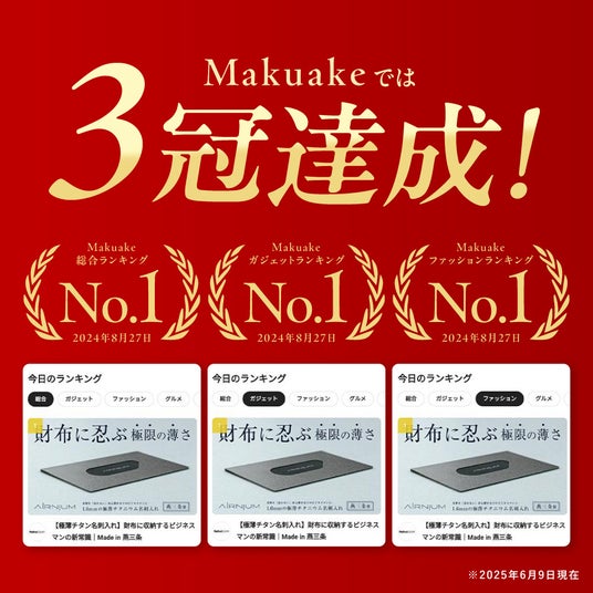 AIRNIUMは今回の一般販売開始までにMakuake、machi-yaにて2度のクラウドファンディングに挑戦し、総支援者数2,200人、総支援額1,000万円を達成。ビジネスマンの悩みを解決する新ジャンルの名刺入れとして多くの反響を呼びました。
