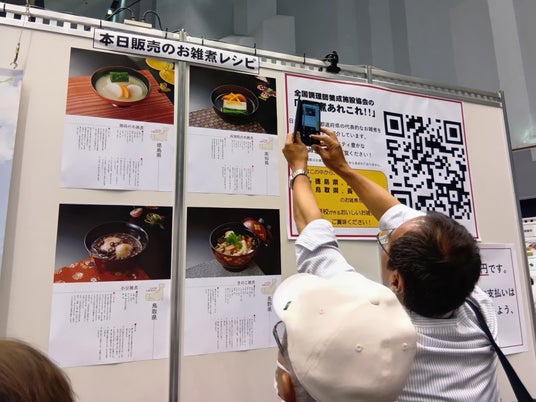 販売した4県の「お雑煮パネル」を設置。サイト特設ページにリンクしたQRコードからは、他県の雑煮レシピも見ることができます。