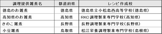 ・各都道府県の調理師学校の協力の下、伝統的雑煮レシピを作成