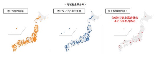 米の卸を主体とする「米麦卸売業」は全国で1,822社、売上規模別にみると、「1~5億円未満」が693社(38.0%)と最も多く、「1億円未満」が555社(30.5%)と続き、「5億円未満」で1,248社(68.5%)であった。各企業の売上高合計をみると、「100億円以上」の34社で全体の47.5%を占めており、中央値が2.2億円であることからも小規模企業が圧倒的に多いことが明らかである。従業員数別にみると「1~5人未満」が833社(45.7%)、「従業員なし」が320社(17.6%)と「5人未満」で63.3%を占めている。都道府県別では、「兵庫県」が118社と最も多く、「東京都」が116社、「新潟県」105社、「茨城県」93社、「北海道」91社と続き、収穫量や流通量が多い地域に企業が拠点を構えている。