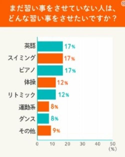 ピアノを習うことによる知育効果が周知され始めたことや、将来の選択肢を広げるために英語学習の必要性を強く感じている親が多いことがわかります。