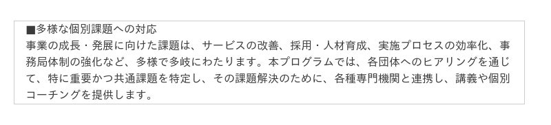 また、本プログラムでは、より多くのステークホルダーとの連携を重視し、企業や行政機関との連携を図るネットワーキングの機会を設ける予定です。プログラム終了後も各団体のインパクトの創出が継続し、社会全体に波及していくよう、女性の雇用にご関心のある企業・行政の皆様、これらの取り組みを応援したい企業・財団等の皆様、そして現場の挑戦を伝えていただける報道関係者の皆様には、ぜひこの活動にご注目いただき、私たちまでお気軽にご連絡ください。