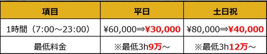 - 別途電気使用料金が2000円/h 発生いたします。