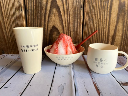 当社の運営する直営店(新潟市中央区古町通)では、糀ドリンク(米糀の甘酒)をベースにした各種飲料・食品を提供しています。寒い時期には温かいドリンク、暑い時期には冷たいドリンクに加えてかき氷も人気のメニューです。従前はいずれも使い捨ての、紙やプラスチック製の食器を使用していました。
