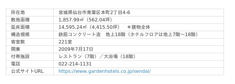 ■「三井ガーデンホテル仙台」施設概要