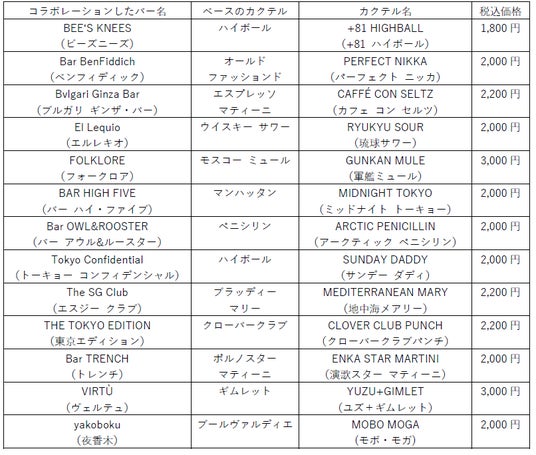 世界で活躍する日本のトップバー13店とコラボレーションしたカクテルが楽しめる