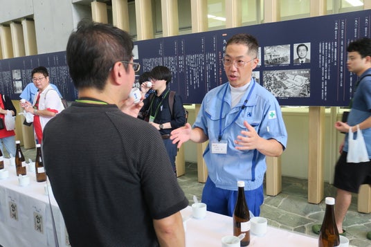 「貯蔵原酒100本のきき酒会」は2015年に初開催し、今年で7回目となります(コロナ禍での休止期間あり)。タンク100本分から取り出した原酒を朝日酒造エントランスホールにズラリと並べ、お好みの銘柄をご堪能いただきます。タンクごとの酒質や熟成度合いの異なる原酒の味わいや奥深さをお楽しみください。