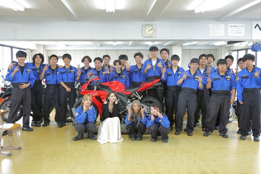 まずダレノガレさんが訪れたのは、水戸自動車大学校。バイク整備実習に励む学生たちの様子を見学しながら、整備士という職業の重要性に言及しました。