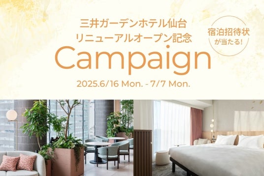 株式会社三井不動産ホテルマネジメント(本社:東京都中央区、代表取締役社長:杉山 亮)は、運営する三井ガーデンホテル仙台(所在:宮城県仙台市青葉区本町2-4-6)のリニューアルを記念して、会員プログラム「MGH Rewards Club」の会員様を対象に、期間限定で2つの特別なプレゼントキャンペーンを実施いたします。日頃よりご愛顧いただいている皆さまに感謝の気持ちを込めて、特別な“旅”の贈り物をお届けします。
