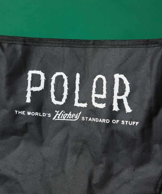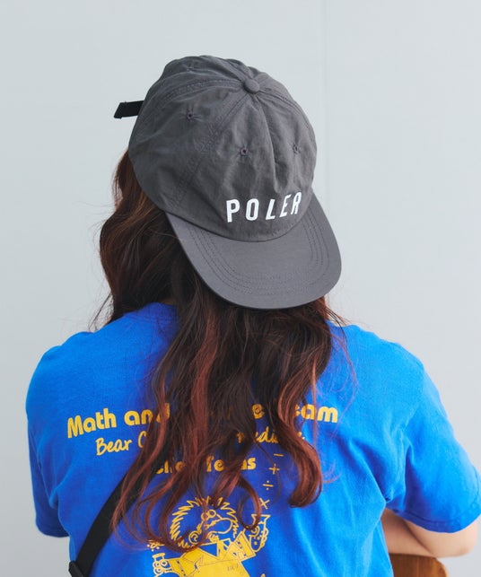 ブリッジを描くPOLeRロゴがオールドスクールな魅力を醸し出しているキャップ。耐久性のあるナイロン素材を使用しており、長く愛用できること間違いなし。