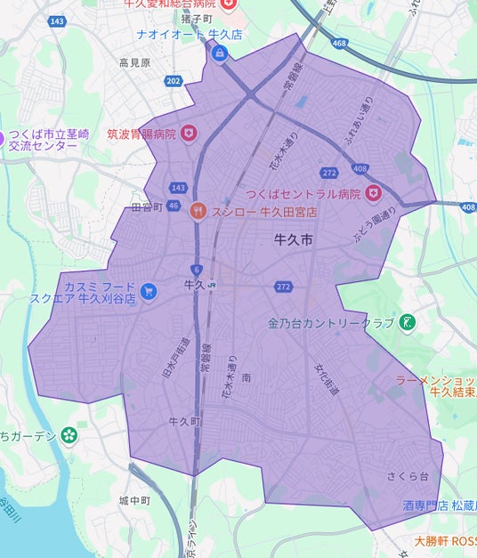- 茨城県:竜ヶ崎市、牛久市、筑西市